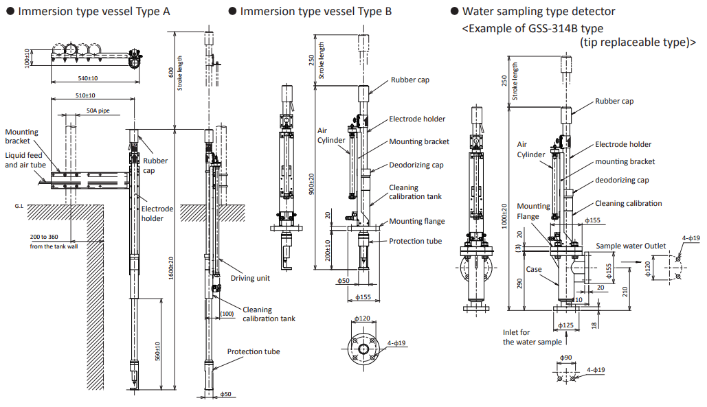 전극 홀더는 공기 실린더에 의해 샘플 수면에서 끌어 올려집니다. 물이 방출되고 고압 세척수가 공기 중의 전극 민감 부분에 주입됩니다. 이는 낮은 압력 손실과 높은 분사 효과를 가진 세척 방법입니다. 또한, 화학 솔루션이 샘플 수면과 같은 방식으로 접촉하지 않기 때문에 희석으로 인한 효과 감소에 대한 우려가 없습니다.